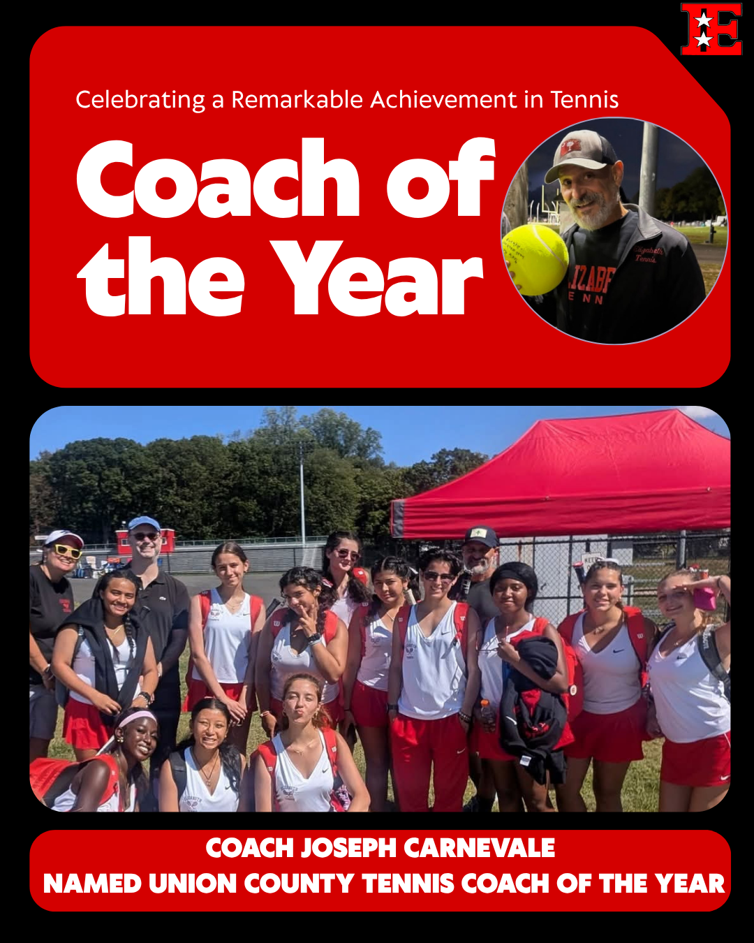 We are proud to celebrate Coach Joseph Carnevale for earning the prestigious title of Union County Tennis Coach of the Year! His leadership and dedication transformed the program, guiding the team from a challenging 0-9 season in the Mountain Division to an outstanding 7-1 record in the Valley Division. Under his guidance, the team qualified for the state tournament, advancing to the quarterfinals against Westfield. This remarkable turnaround reflects Coach Carnevale’s commitment to excellence and his ability to inspire athletes to reach their full potential. Congratulations, Coach!